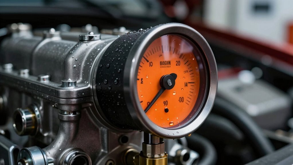 You’ll find that oil viscosity directly impacts pressure readings, affecting pressure accuracy. Thicker oil increases resistance, leading to higher pressure readings, while thinner oil lowers them. When you change oil types or viscosities, expect fluctuations in pressure gauges. It’s essential to understand this relationship, so you can interpret oil pressure correctly and avoid misdiagnosing issues, ensuring your engine runs smoothly without unnecessary repairs caused by misreading pressure due to viscosity changes.