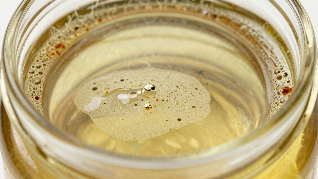 Understanding oxidation thickening helps you recognize why some oils become sticky over time. As oils oxidize, their viscosity increases, leading to that undesirable residue. Notably, studies show that oils can lose up to 50% of their antioxidant properties within just six months of storage, accelerating the thickening process. By knowing this, you can better manage oil quality and extend its lifespan, ensuring smoother performance and reducing waste. Keep an eye on oil freshness to prevent unwanted stickiness and maintain ideal functionality.