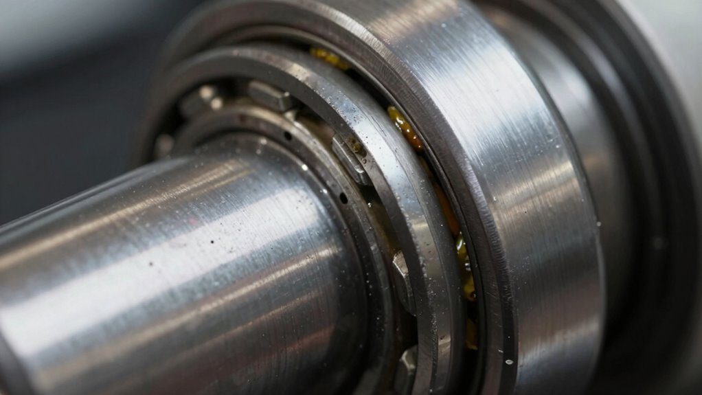 You can detect early signs of lubrication failure by monitoring for oil contamination and improper alignment. Look for increased vibration, unusual noise, or temperature spikes, which often indicate lubrication issues. Regularly check oil condition and cleanliness, as contaminated oil can cause bearing lag. Additionally, verify proper alignment of components to prevent uneven load and premature wear, helping you catch lubrication problems before they lead to major damage.