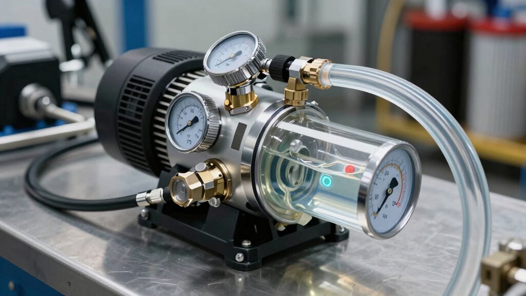Regular system maintenance is essential to keep your fuel polishing pump running smoothly and guarantee consistent flow. Regularly inspect and clean filters to prevent clogging and assure maximum performance. Incorporate fuel additives to improve fuel stability during storage and reduce deposits that could restrict flow. When managing fuel storage, avoid prolonged periods of stagnation by periodically circulating fuel through the system. This helps prevent sediment buildup and maintains fuel quality. Regularly test your fuel for contaminants and water, addressing issues promptly. Keep an eye on filter conditions and replace them before they become restrictive. Proper maintenance not only prolongs filter life but also ensures your pump operates efficiently, preventing flow interruptions that could lead to engine problems. Consistent upkeep saves time and costly repairs down the line.