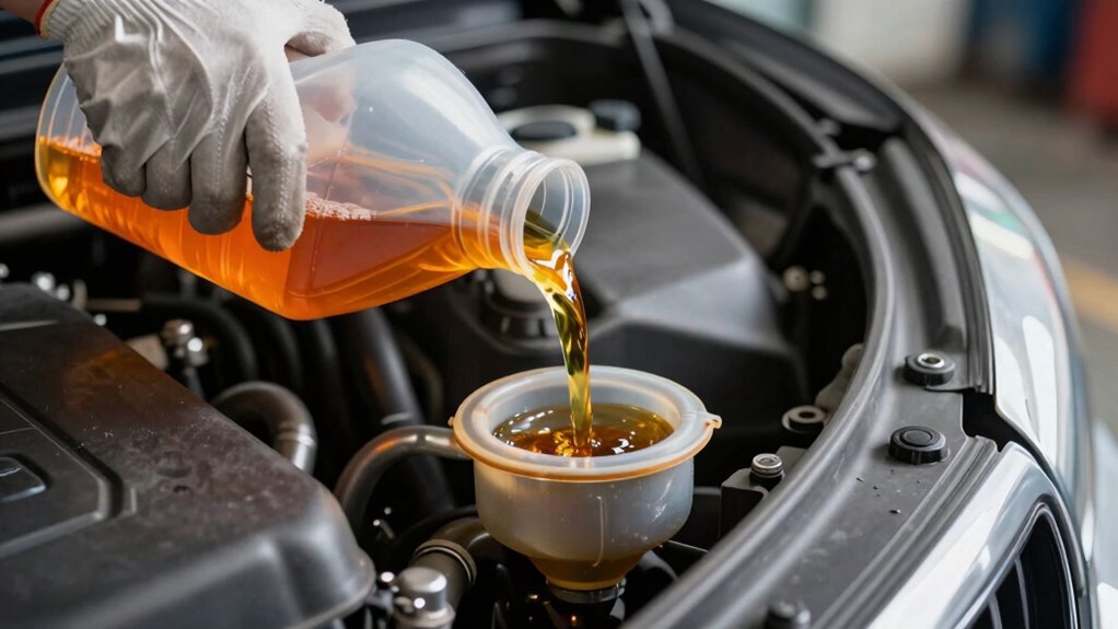 Think of your transmission like a delicate garden hose—air bubbles are like stubborn knots blocking the flow. When you take care during refilling, you make certain of smooth operation, just like untangling a hose keeps water flowing freely. I once watched a mechanic carefully bleed a transmission, and it ran perfectly afterward. By following these steps, you’ll keep your transmission fluid flowing smoothly, avoiding those pesky air pockets that can cause trouble down the line.