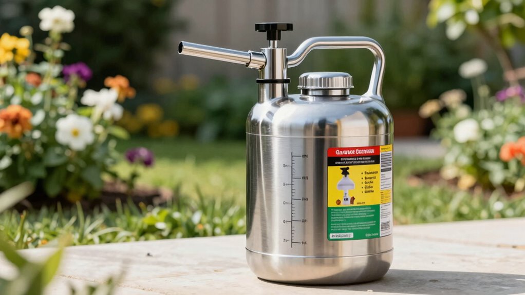 Ensuring safety features are integrated into your 2-gallon chemical pump sprayer is essential for protecting yourself and others during use. Pressure release valves help prevent over-pressurization and accidental spills, offering peace of mind. Lockable shut-off valves allow continuous spraying without manual pressure, reducing fatigue and sudden discharges. Chemical-resistant seals and gaskets ensure safe handling of harsh chemicals like bleach and pesticides, minimizing leaks and exposure risks. Safety valves and gauges provide real-time pressure monitoring, helping you maintain safe operating levels. Automatic pressure relief mechanisms prevent dangerous buildup, safeguarding against chemical hazards. These features work together to create a safer spraying experience, giving you confidence while handling potentially hazardous substances. Prioritizing safety features ensures you protect yourself, your environment, and others nearby.
