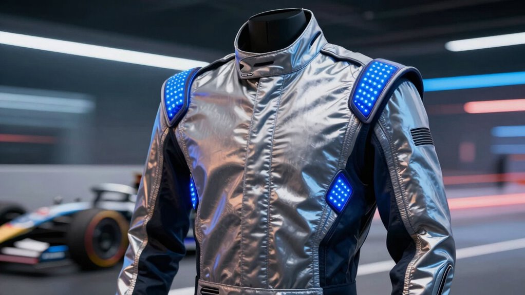 Cooling suits are like tailored armor, perfectly fitted to each racing discipline. I can customize them to match the unique demands of Formula 1, NASCAR, or rally racing, ensuring ideal temperature regulation and mobility. By adjusting materials, cooling channels, and fit, I make sure drivers stay comfortable and focused, like a second skin that adapts to their specific needs. Custom solutions truly elevate performance and safety on the track.