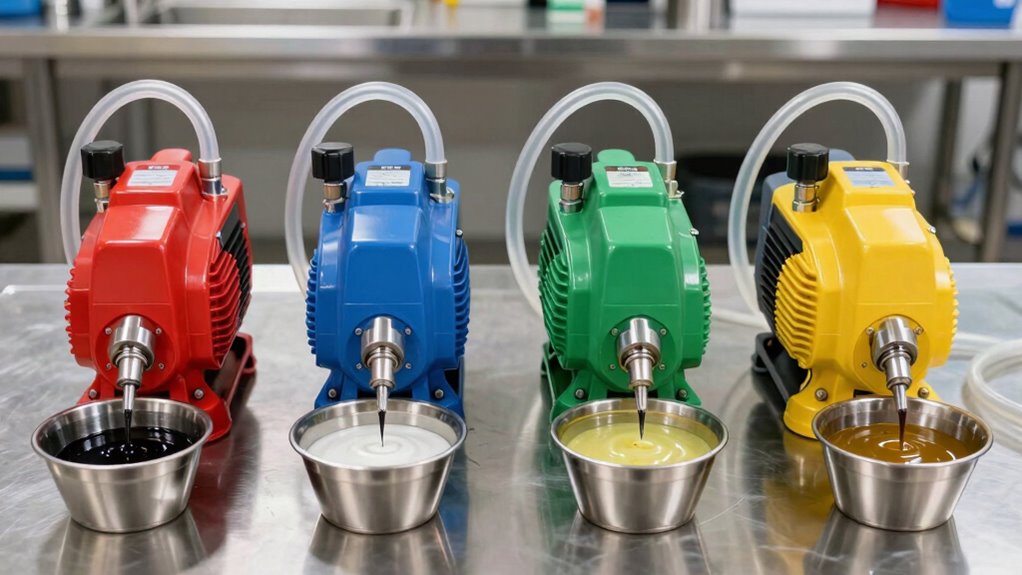Think of these pumps as sturdy bridges—designed to carry heavy loads. Yes, they can handle high-viscosity or specialty lubricants, but performance depends on the pump’s power and design. I’ve seen models that excel with thick greases, thanks to robust motors and specialized components. Just make certain you pick a pump rated for the specific lubricant’s viscosity, so it flows smoothly without strain or damage.
