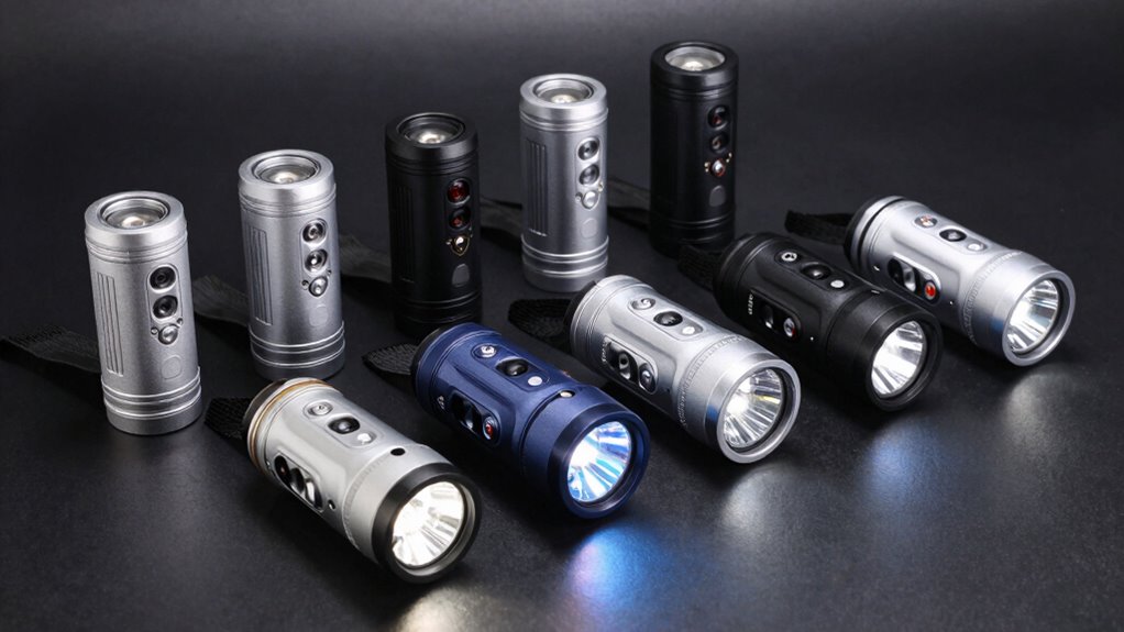 When selecting a rechargeable headlamp for professional use, evaluating its light modes and focus features is essential for tailoring illumination to specific tasks. Multiple light modes, like high, medium, low, strobe, and SOS, provide versatility for different environments and activities. Adjustable focus and zoom functions allow seamless switching between floodlight and spotlight, optimizing beam intensity and coverage. A headlamp with a 90° or greater adjustable beam angle helps customize light direction for precise task illumination. High-quality models often feature rapid mode switching, enhancing safety and efficiency. Focus adjustment mechanisms, such as sliding or rotating lenses, let you concentrate light on specific areas or widen the beam for broader visibility. These features ensure you have adaptable, effective lighting for any professional situation.