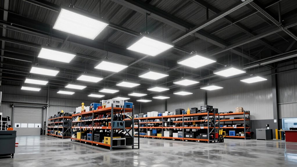 Higher wattage LED high bays generally provide brighter light and cover a larger area, making them ideal for bigger spaces. Lower wattage options are more energy-efficient and suited for smaller areas, but they still deliver sufficient brightness. I recommend matching the wattage to your space size and lighting needs. Remember, increasing wattage boosts coverage and brightness, but always consider energy use and how much light your workspace truly requires.