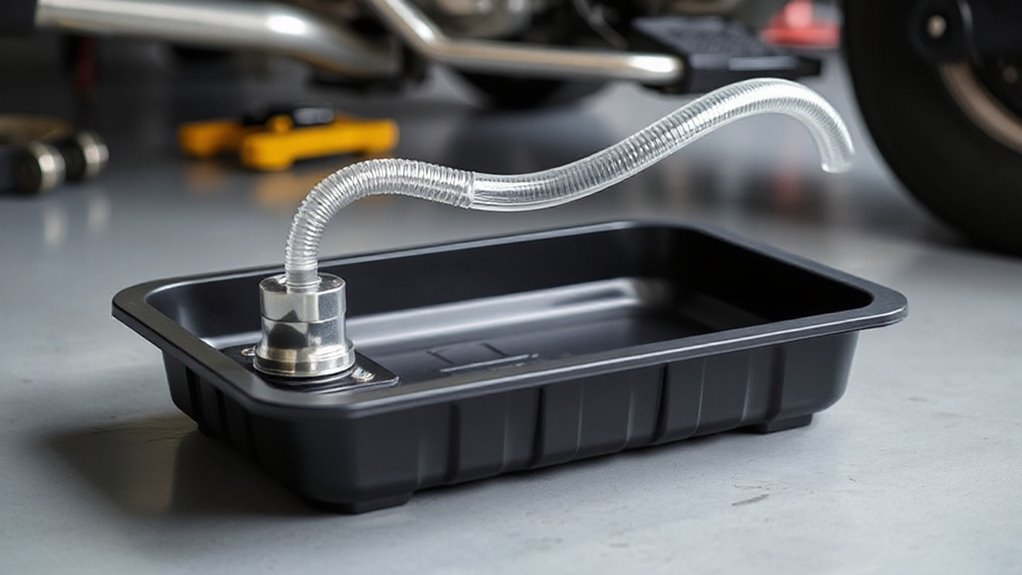 Additional filtration features are essential for ensuring the quality and longevity of your oil drain system. Mesh filters or impurity screens help prevent debris from contaminating the fluids, extending the lifespan of pumps and storage tanks. High-quality filtration components can effectively trap metal particles, dirt, and sludge, ensuring cleaner oil or coolant during transfer. Removable and washable filters make maintenance easier and keep the filtration system working efficiently over multiple uses. Some low-profile drain pans include internal filtration systems that maintain oil purity, reducing the need for additional filtering steps during disposal. These enhanced features also support environmentally responsible disposal by preventing solid contaminants from polluting recycling streams or disposal sites, helping you manage waste more sustainably.