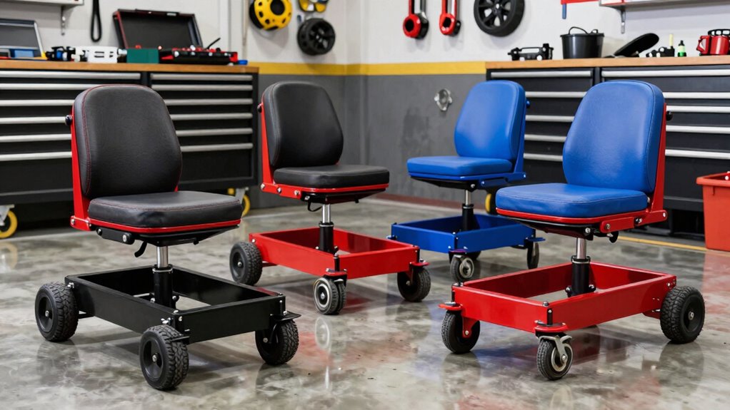 Many mechanic seat creeper combos come equipped with convenient storage compartments or tool trays, making your work easier and more efficient. I love how these added features facilitate quick access to tools and keep everything organized. Whether it’s a small tray or larger storage space, these extras boost your productivity on the job. So, when choosing a combo, look for those with built-in storage to maximize your workday wonder!