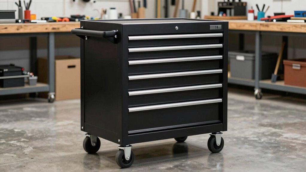 I believe that steel and heavy-duty aluminum are the best materials for ensuring maximum durability in heavy-duty tool carts. Steel offers incredible strength and can handle tough environments, while aluminum provides a good balance of strength and lighter weight. Both materials resist corrosion when properly treated, making your tool cart last longer. Choosing a cart made from these materials means you’ll have a reliable, long-lasting storage solution for your tools.