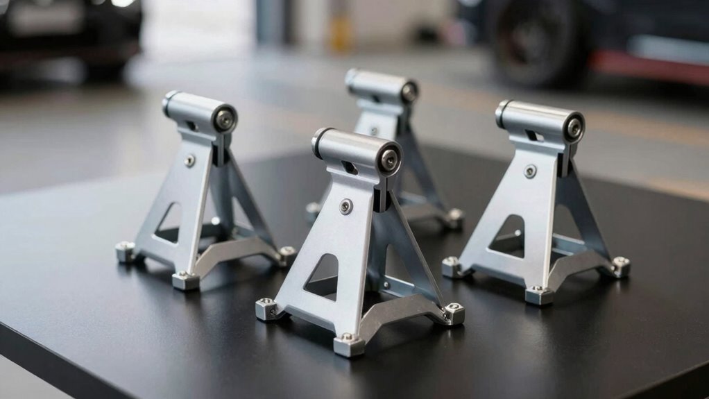 Think of lightweight jack stands as the sturdy wings of a bird—they might be slim, but they’re built to support impressive weight. Yes, I’ve seen them safely hold racing vehicles, thanks to high-grade materials and solid engineering. When I use them, I trust their strength as much as I trust a pilot’s wings. If you choose quality stands, they’ll keep your race car secure, just like a bird in flight.