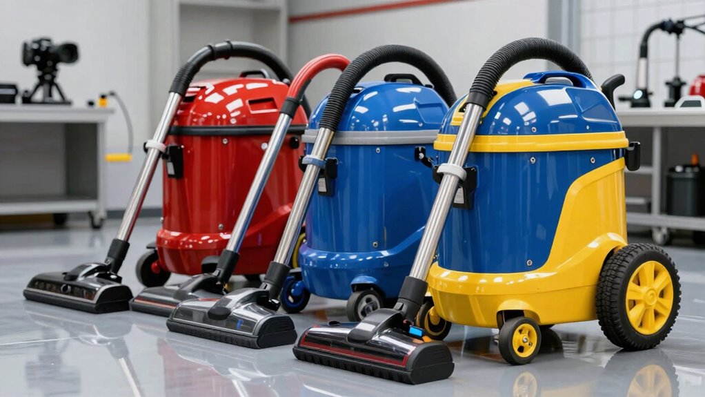 When selecting an industrial wet-dry vacuum, considering how easy it is to move around the workspace can make a big difference in your efficiency. Lightweight models with built-in handles and balanced weight distribution let me reposition the vacuum quickly without wasting time. Compact designs with smaller tanks and streamlined shapes fit easily into tight spaces, simplifying storage and transport. Swivel casters and rubber wheels ensure smooth movement across different surfaces, reducing user fatigue during long tasks. Extended power cords and flexible hoses boost operational reach, so I don’t have to unplug and move the vacuum constantly. Onboard storage for accessories and organized cord management keep everything tidy and ready for quick setup, making the vacuum more portable and user-friendly overall.